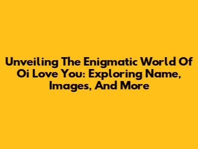 Unveiling The Enigmatic World Of 'Oi Love You': Exploring Name, Images, And More