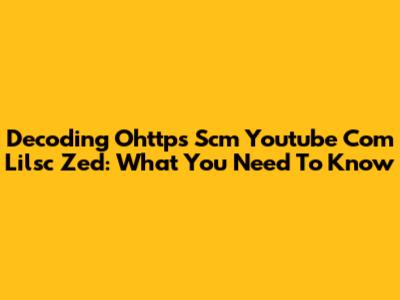 Decoding Ohttps Scm Youtube Com Lilsc Zed: What You Need To Know