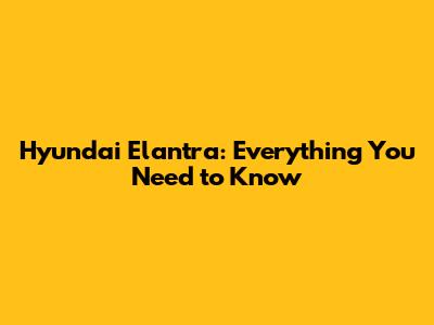 Hyundai Elantra: Everything You Need To Know