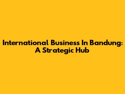 International Business In Bandung: A Strategic Hub