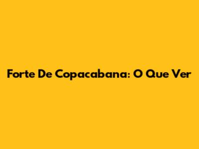 Forte De Copacabana: O Que Ver