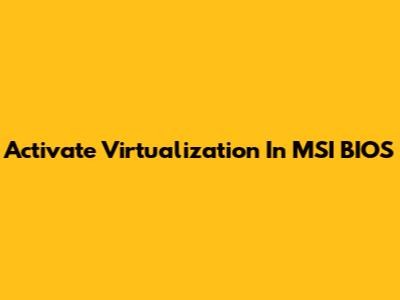 Activate Virtualization In MSI BIOS