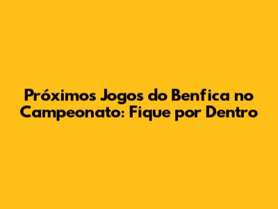 Próximos Jogos Do Benfica No Campeonato