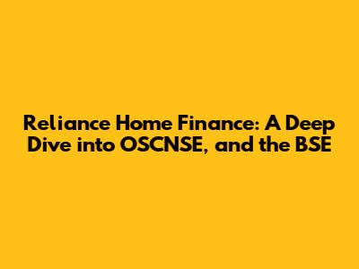 Reliance Home Finance: Navigating OSCNSE And The BSE