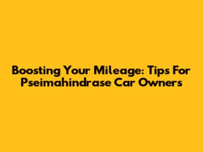 Boosting Your Mileage: Tips For Pseimahindrase Car Owners