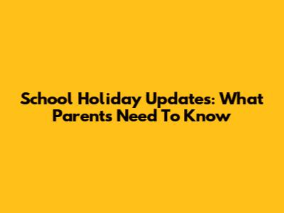 School Holiday Updates: What Parents Need To Know