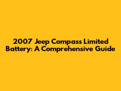 Hey there, Jeep enthusiasts! Today, we're diving deep into the 2007 Jeep Compass Limited battery, a topic that can cause a headache for any car owner. We'll explore everything from common issues and symptoms to choosing the right battery and performing a successful replacement. If you're scratching your head about why your Compass won't start, or if you're experiencing electrical gremlins, you're in the right place. Let's get started and keep your Jeep running smoothly!