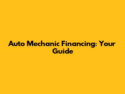 Auto Mechanic Financing: Your Guide