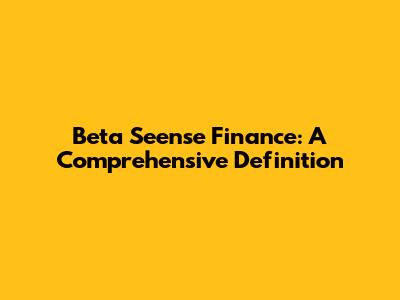 Beta Seense Finance: A Comprehensive Definition