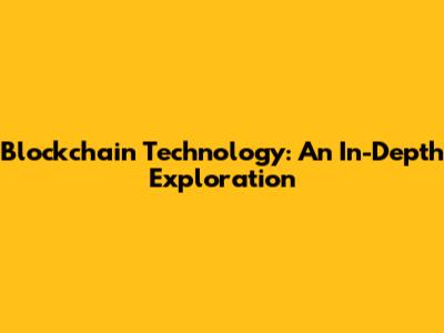 Blockchain Technology: An In-Depth Exploration