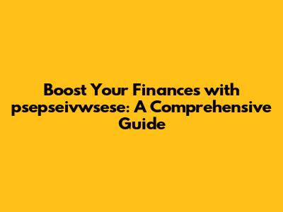 Boost Your Finances With Psepseivwsese: A Comprehensive Guide