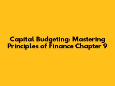 Capital Budgeting: Mastering Principles Of Finance Chapter 9