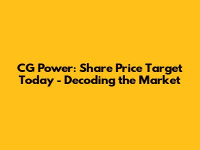 Hey everyone! Let's dive into the fascinating world of CG Power's share price target today. Navigating the stock market can feel like charting unknown waters, right? But don't worry, we're here to break down the complexities and provide you with a clearer picture. We'll explore what influences CG Power's stock performance and provide insights to make informed decisions. This isn't just about throwing numbers around; it's about understanding the forces that shape the company's value and, ultimately, your investment. So, grab a coffee, sit back, and let's unravel the story behind CG Power's stock.
