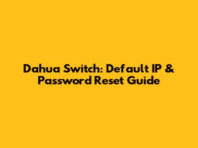 Dahua Switch: Default IP & Password Reset Guide