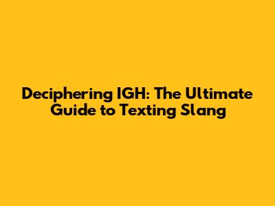 Deciphering IGH: The Ultimate Guide To Texting Slang