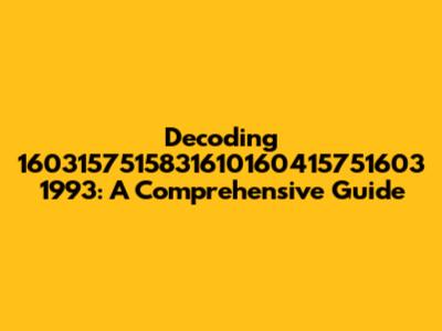 Decoding 1603157515831610160415751603 1993: A Comprehensive Guide