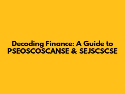 Decoding Finance: A Guide To PSEOSCOSCANSE & SEJSCSCSE
