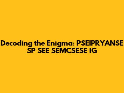 Decoding PSEIPRYANSE SP SEE SEMCSESE IG: A Guide