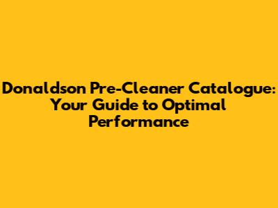 Donaldson Pre-Cleaner Catalogue: Your Guide To Optimal Performance