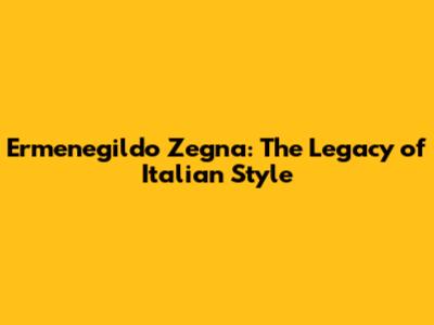 Ermenegildo Zegna: The Legacy Of Italian Style