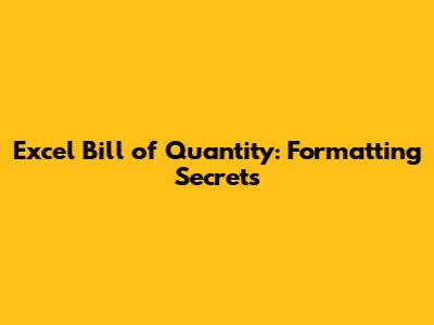 Excel Bill Of Quantity: Formatting Secrets
