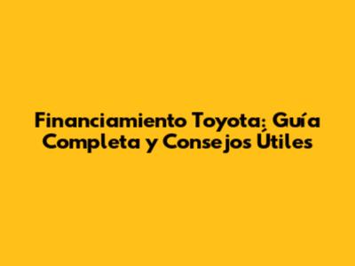 Financiamiento Toyota: Guía Completa Y Consejos Útiles