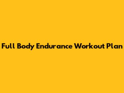 The Full Body Endurance Workout Plan