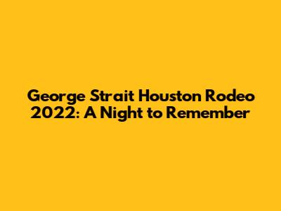 Hey guys! Let's dive into something truly special – George Strait's unforgettable performance at the Houston Rodeo in 2022. If you were there, you already know the magic I'm talking about. And if you weren't, buckle up, because we're about to relive every incredible moment of it. This wasn't just another concert; it was a celebration of country music, a gathering of fans, and a testament to Strait's enduring legacy. From the moment he stepped onto that stage, the energy in the stadium was electric. The crowd roared, the lights flashed, and the air crackled with anticipation. It was more than just a performance; it was an experience that resonated with everyone in attendance.