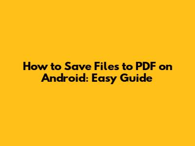 How To Save Files To PDF On Android: Easy Guide
