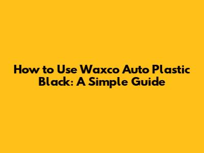 How To Use Waxco Auto Plastic Black: A Simple Guide