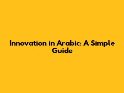 Innovation In Arabic: A Simple Guide