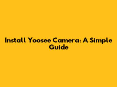 Install Yoosee Camera: A Simple Guide