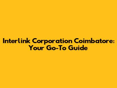 Interlink Corporation Coimbatore: Your Go-To Guide