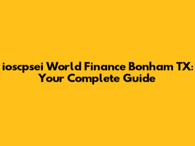 Ioscpsei World Finance Bonham TX: Your Complete Guide
