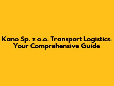Hey there, logistics enthusiasts! Ever wondered how Kano Sp. z o.o. rocks the world of transport and logistics? Well, buckle up, because we're about to dive deep into everything you need to know about this key player in the industry. We'll explore their services, how they optimize operations, and why they might just be the perfect partner for your transport needs. Let's get started, shall we?