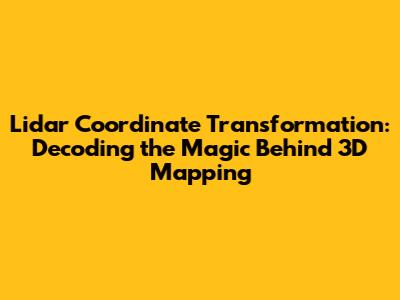 Lidar Coordinate Transformation: A Comprehensive Guide
