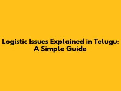 Logistic Issues Explained In Telugu: A Simple Guide