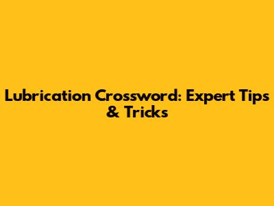 Lubrication Crossword: Expert Tips & Tricks