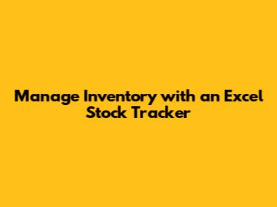 Manage Inventory With An Excel Stock Tracker