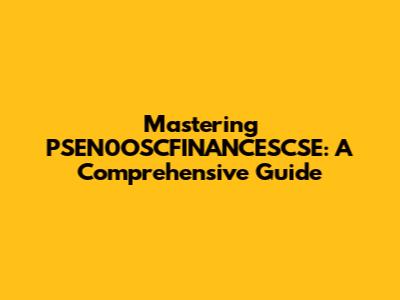 Mastering PSEN0OSCFINANCESCSE: A Comprehensive Guide