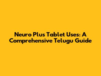 Neuro Plus Tablet Uses: A Comprehensive Telugu Guide