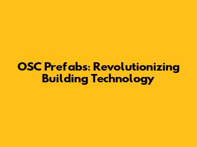 OSC Prefabs: Revolutionizing Building Technology
