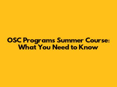 OSC Programs Summer Course: What You Need To Know