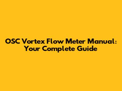 OSC Vortex Flow Meter Manual: Your Complete Guide