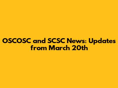 OSCOSC And SCSC News: Updates From March 20th