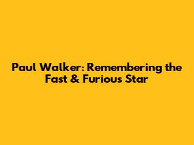 Paul Walker: Remembering The Fast & Furious Star