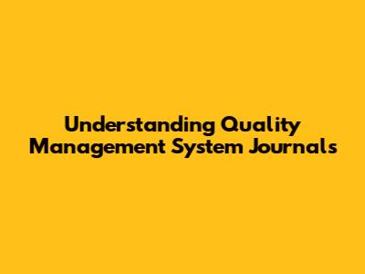 Understanding Quality Management System Journals