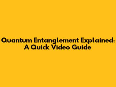 Quantum Entanglement Explained: A Quick Video Guide