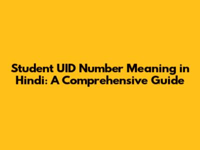 Student UID Number Meaning In Hindi: A Comprehensive Guide
