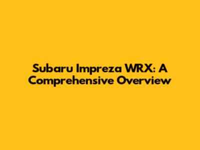 Subaru Impreza WRX: A Comprehensive Overview